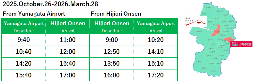 Tourism Liner "Yamagata Airport-Hijiori Onsen" is now in service!